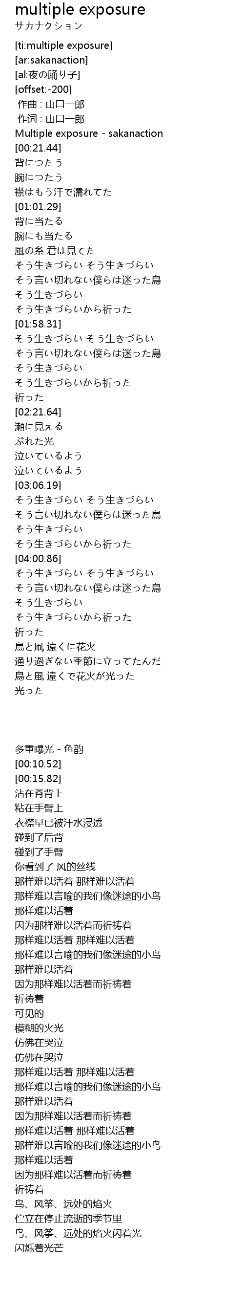 | [00:00.39] | Multiple exposure - sakanaction |