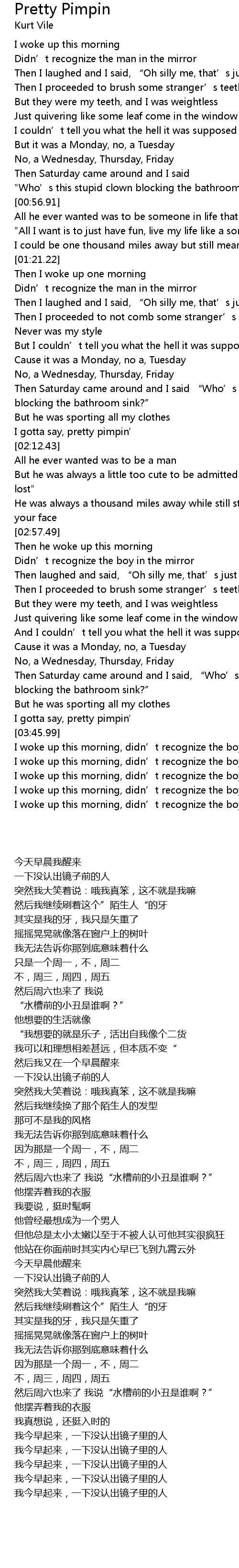 | [00:44.54] | " Who' s this stupid clown blocking the bathroom sink?" |