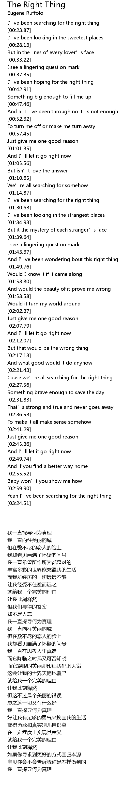 | [03:21.23] | Yeah I' ve been searching for the right thing |