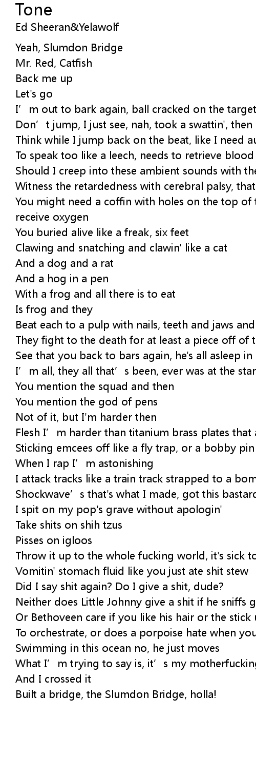 | [02:06.41] | Built a bridge, the Slumdon Bridge, holla! |