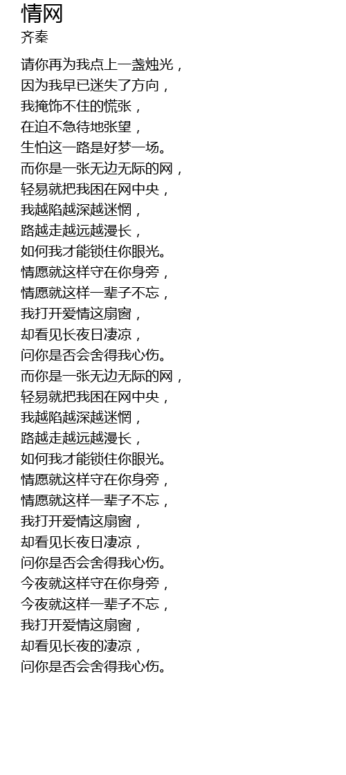 | [00:47.500] | ér nǐ shì yī zhāng wú biān wú jì de wǎng, |