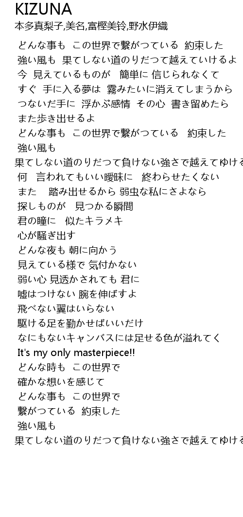 | [00:02.125] | どんな事も この世界で繋がつている 約束した |