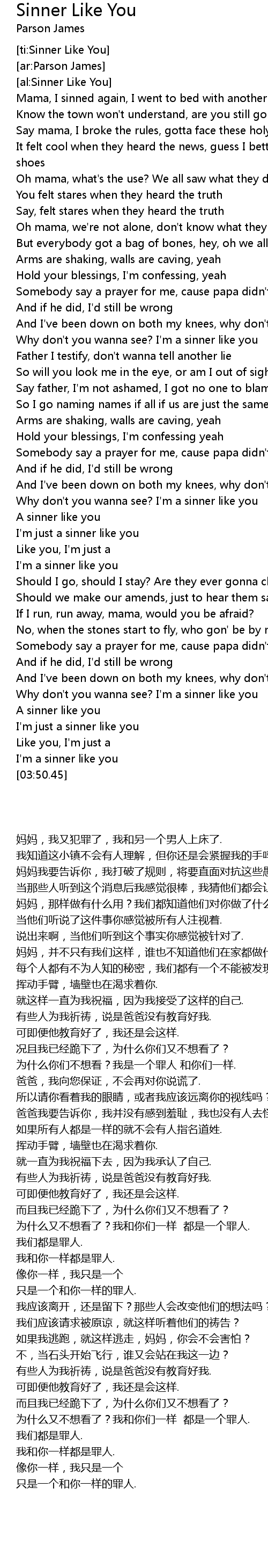 [01:13.32] Why don't you wanna see? I'm a sinner like you