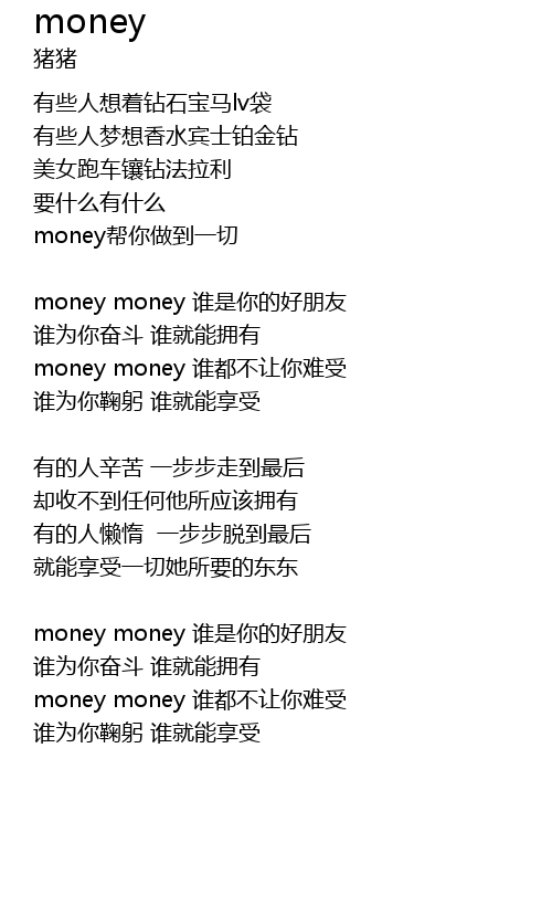 | money money shuí dōu bù ràng nǐ nán shòu | |