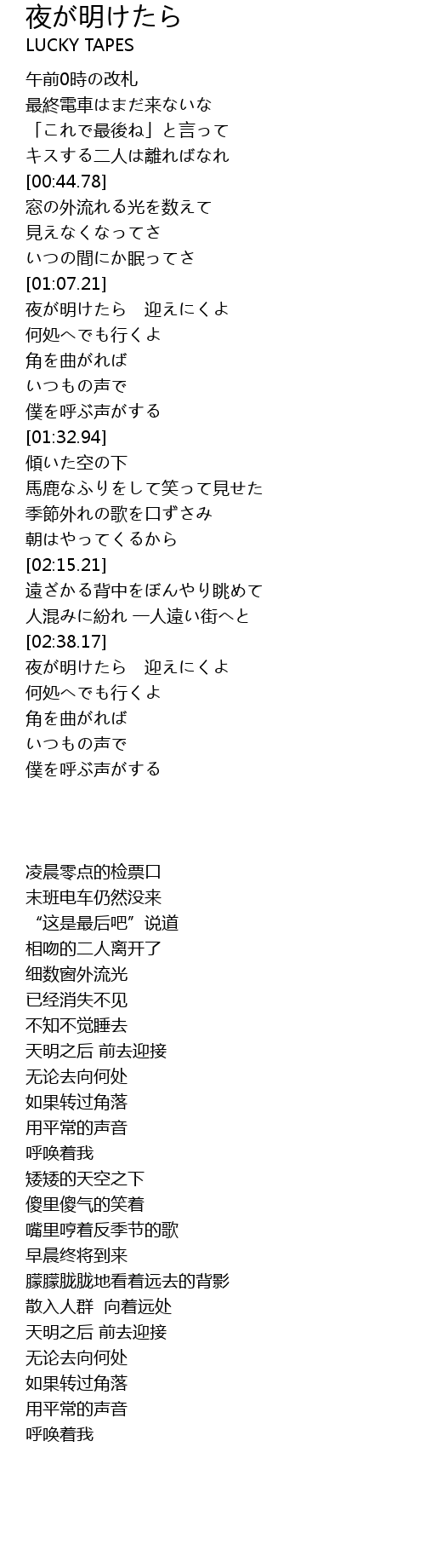| [03:23.36] | 夜が明けたら 迎えにくよ |