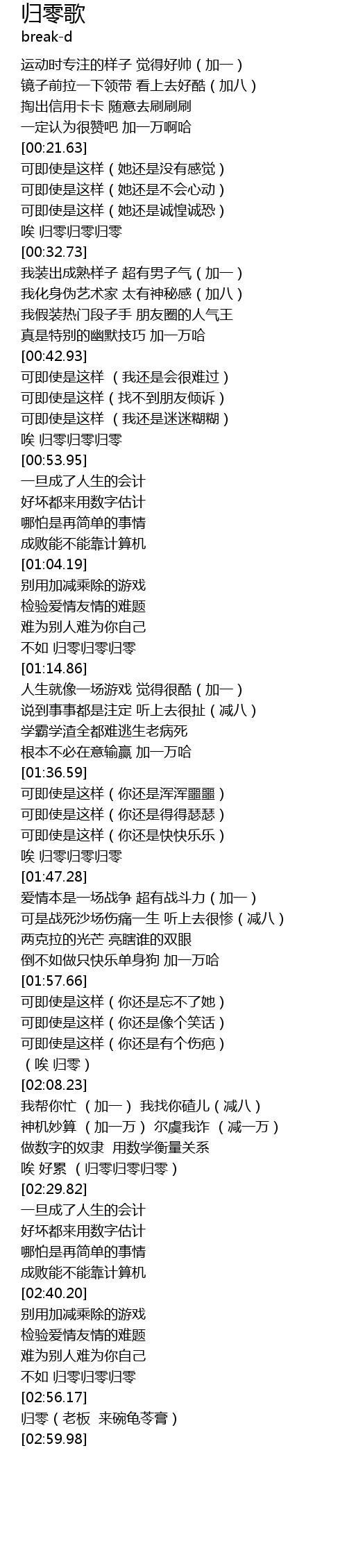 | [02:56.53] | 归零(老板 来碗龟苓膏) |