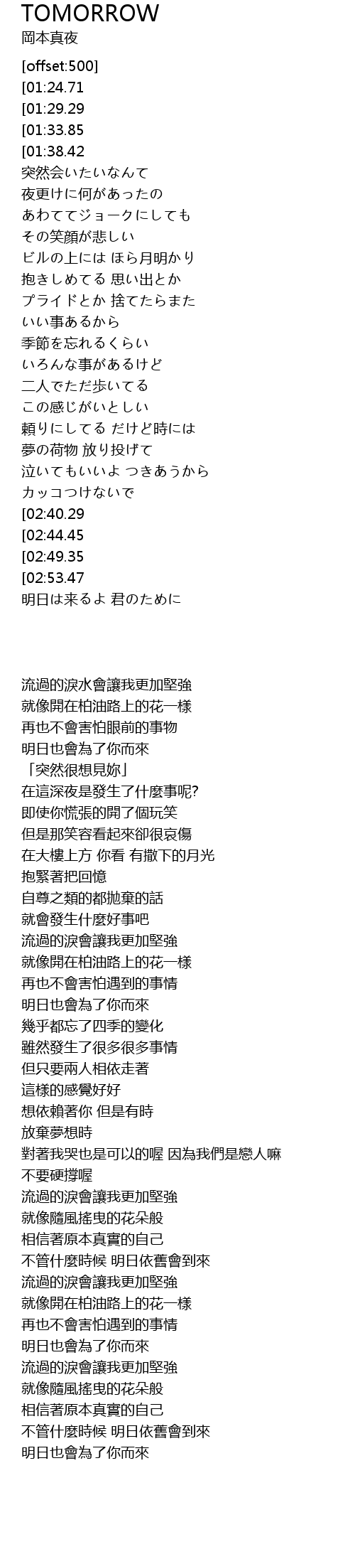 | [01:38.42] | 明日也會為了你而來 |