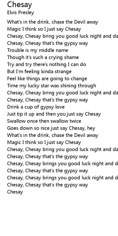 Chesay, Chesay bring you good luck night and day |