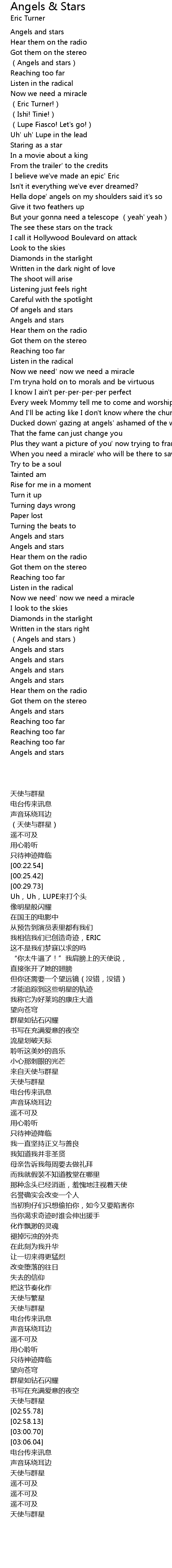 | [02:23.93] | Angels and stars |