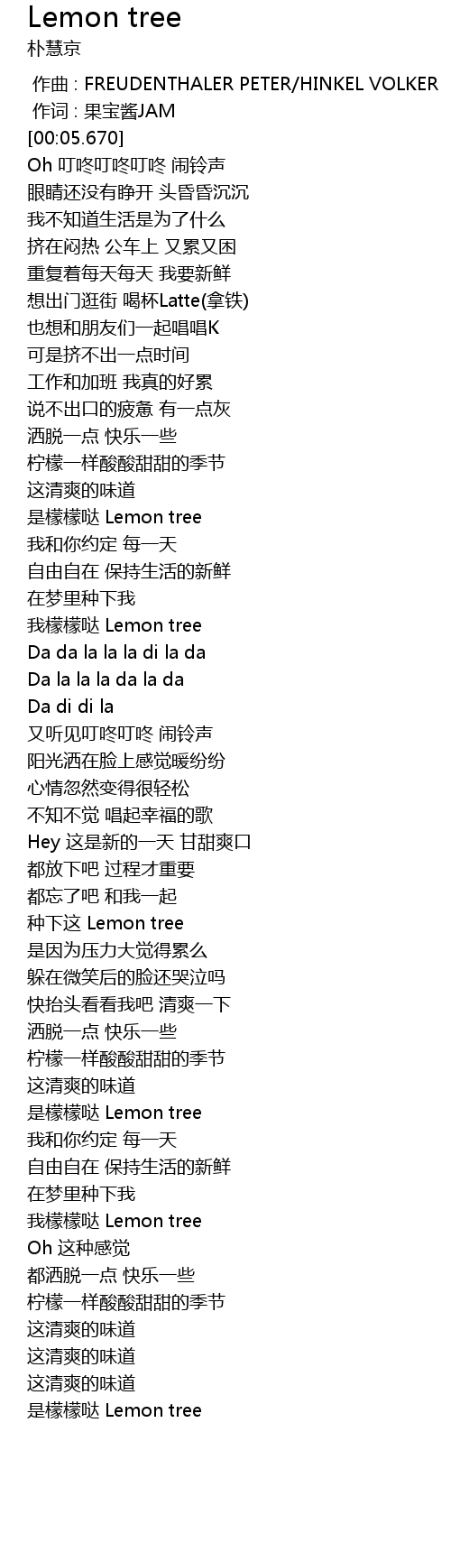 | [02:51.190] | 我檬檬哒 Lemon tree |