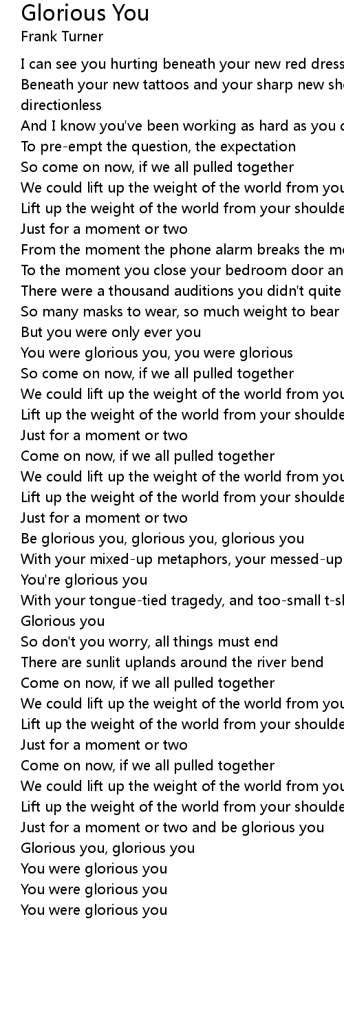 Just for a moment or two and be glorious you |