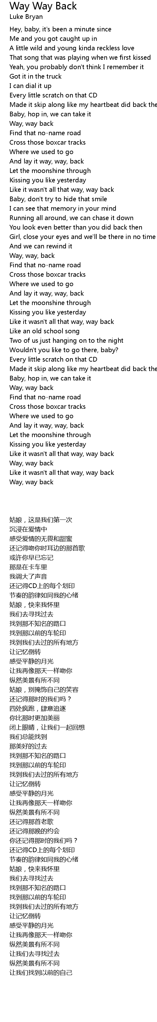 Like it wasn't all that way, way back |