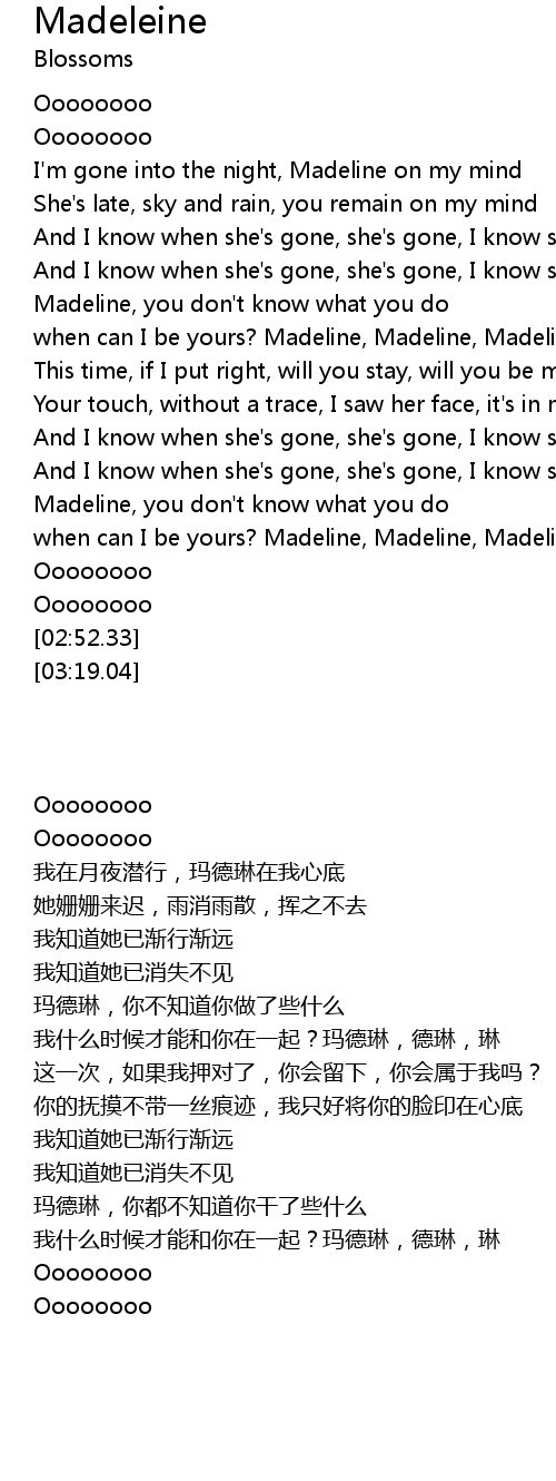 when can I be yours? Madeline, Madeline, Madeline |