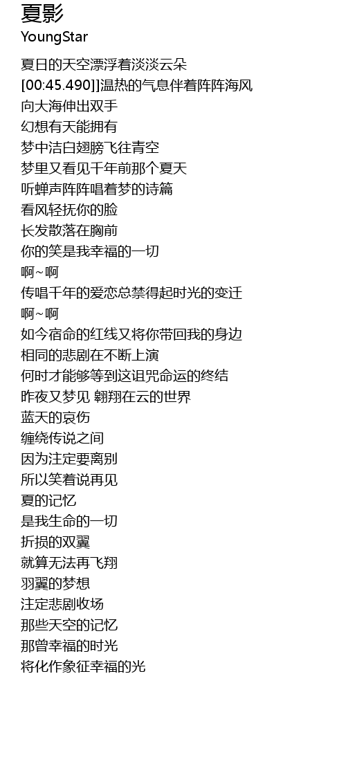 | [00:37.000] | 夏日的天空漂浮着淡淡云朵 |