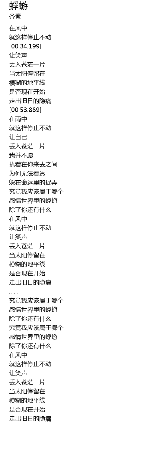| [01:32.158] | 感情世界里的蜉蝣 |
