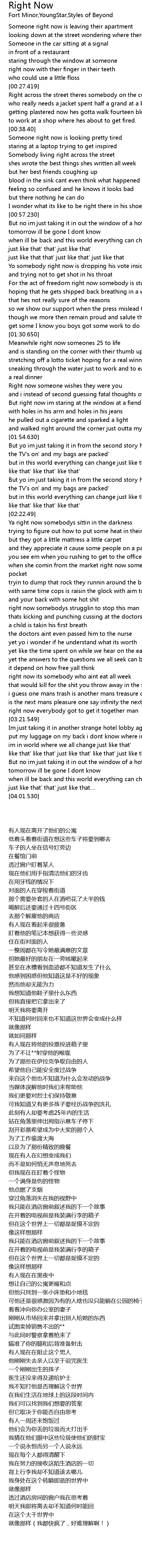 Right Now 歌词