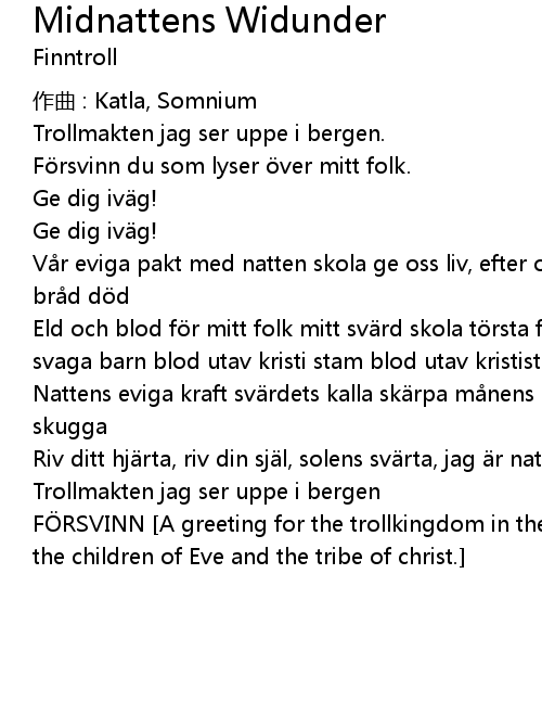 | 歌曲 | Midnattens Widunder |