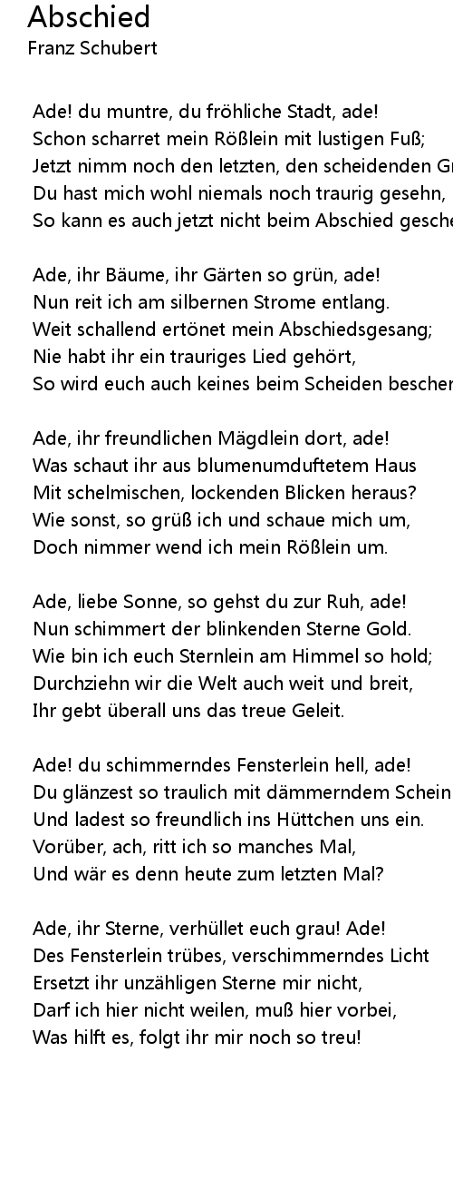 | Ade! du muntre, du fröhliche Stadt, ade! | |