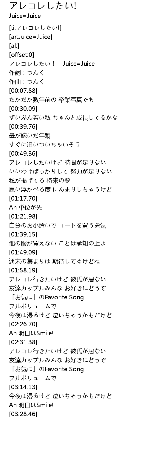 | [00:00.81] | アレコレしたい! - Juice=Juice |