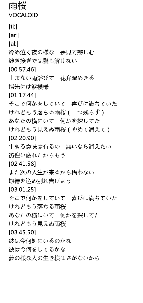 | [03:13.61] | けれどもう落ちる雨桜 |