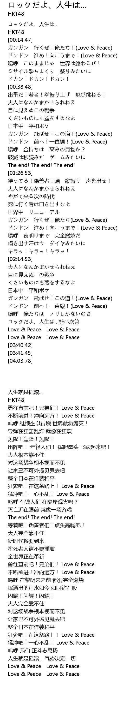 | [02:00.11] | jìn! xiàng! Love Peace |