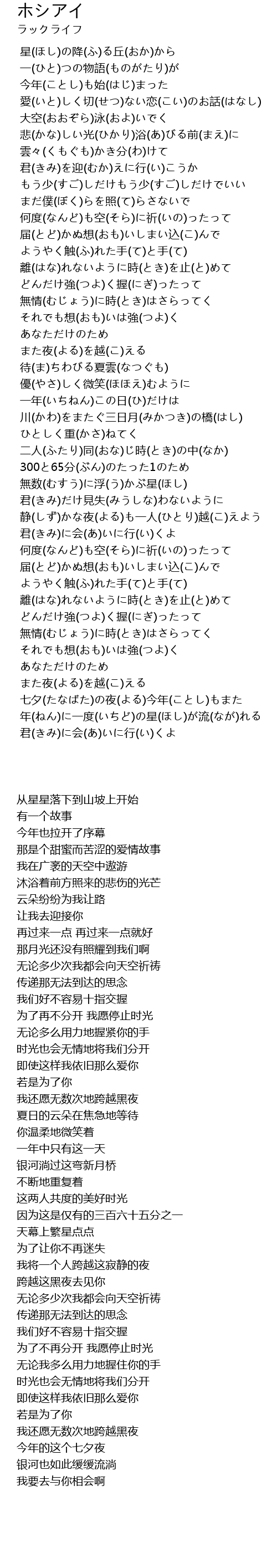 | [03:56.772] | 年(ねん)に一度(いちど)の星(ほし)が流(なが)れる |