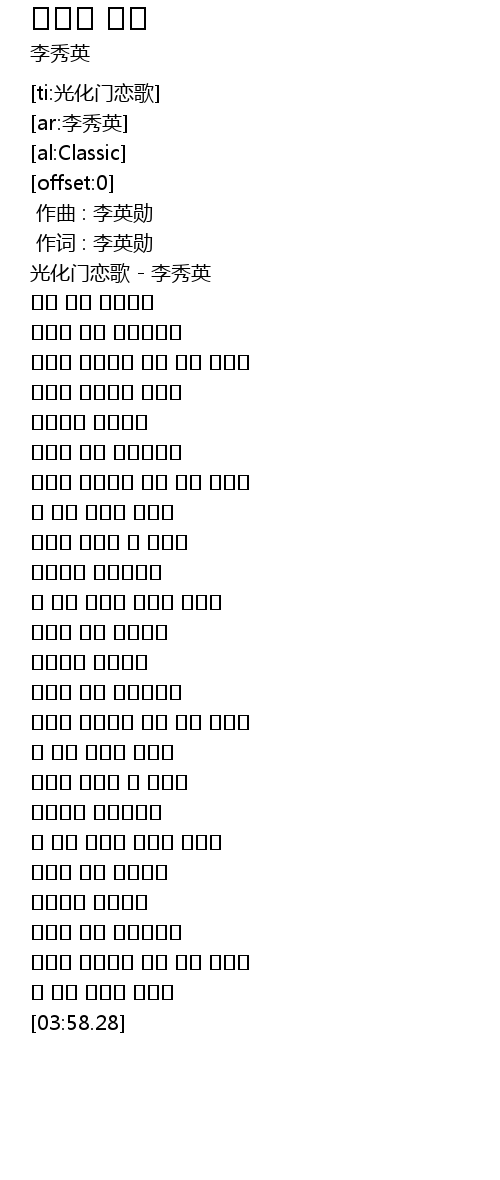 | [00:02.00] | 光化门恋歌 - 李秀英 |