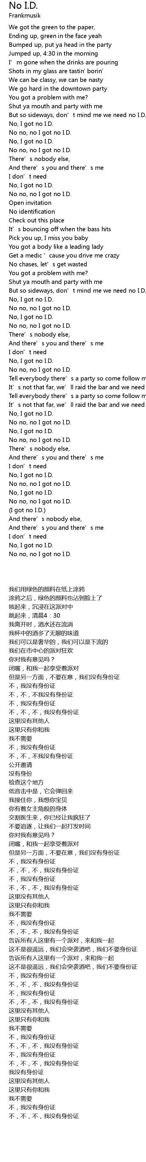 | [00:34.17] | But so sideways, don' t mind me we need no I. D. |
