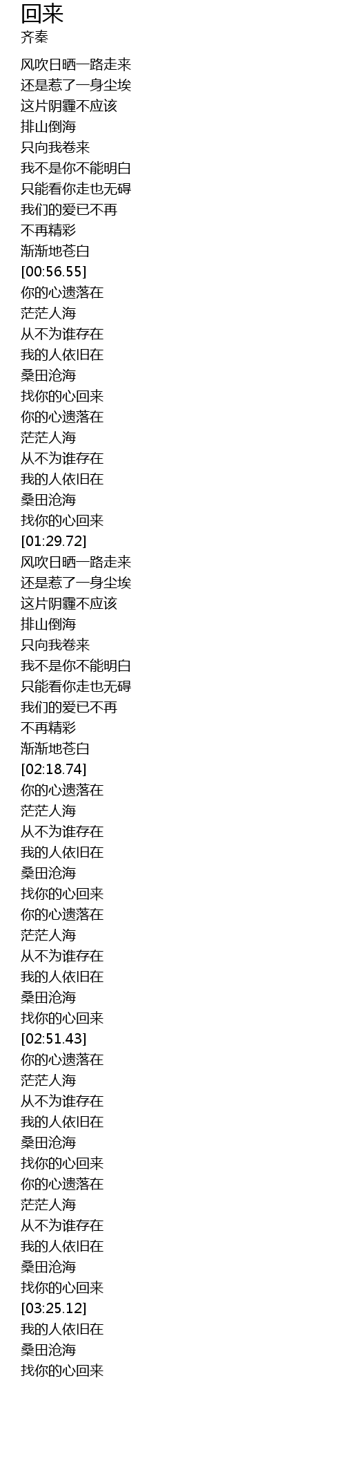 | [03:30.85] | zhǎo nǐ de xīn huí lái |