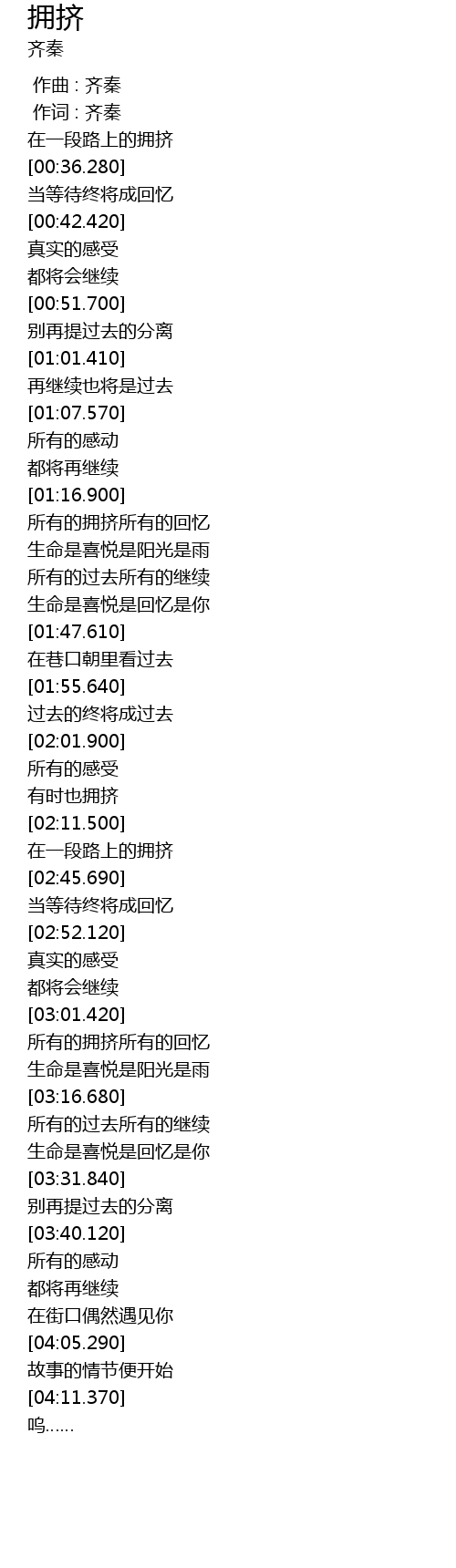 | [00:31.440] | zài yī duàn lù shàng de yōng jǐ |