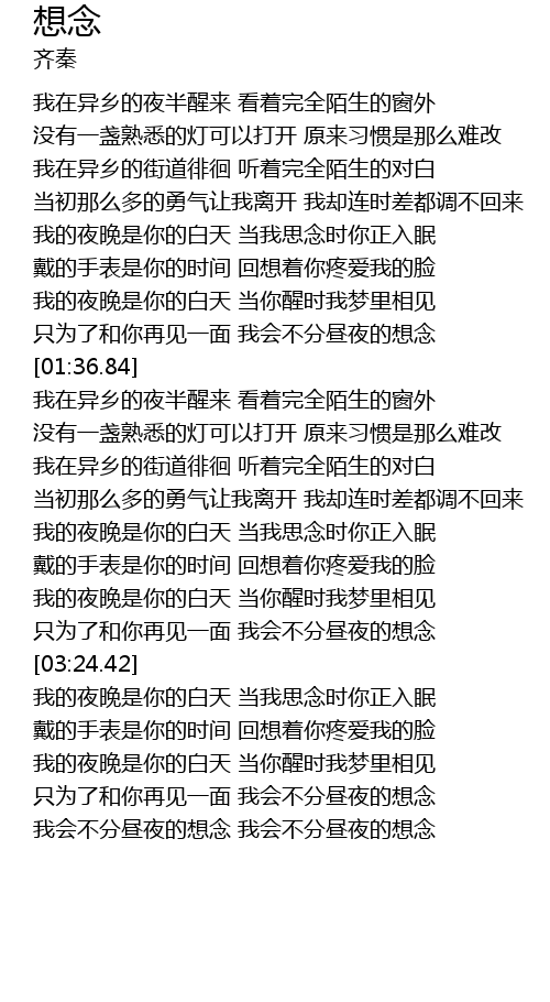 | [04:20.21] | 我会不分昼夜的想念 我会不分昼夜的想念 |