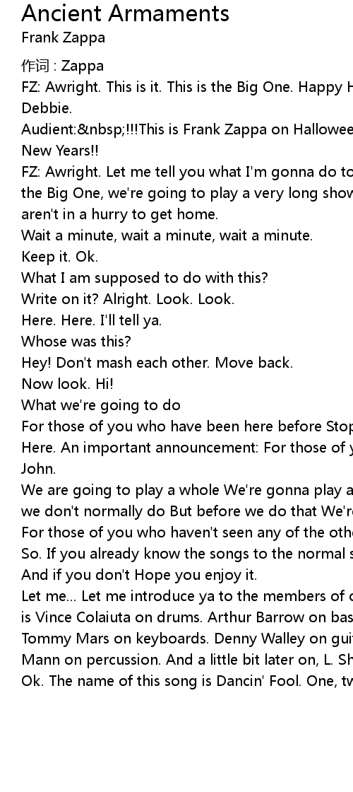 | Audient: nbsp!!! This is Frank Zappa on Halloween and he' s like Guy Lombardo on New Years!! | |
