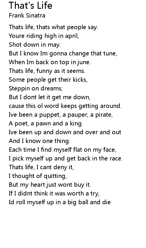 Thats life, thats what people say. |