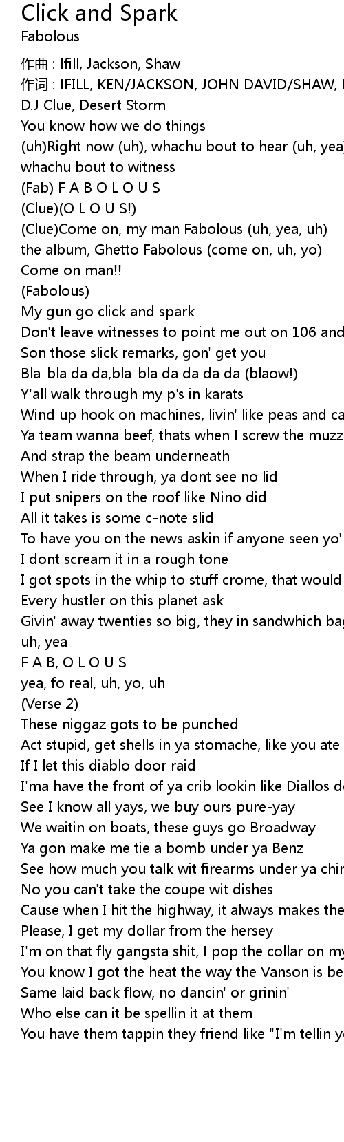 | Clue Come on, my man Fabolous uh, yea, uh | |