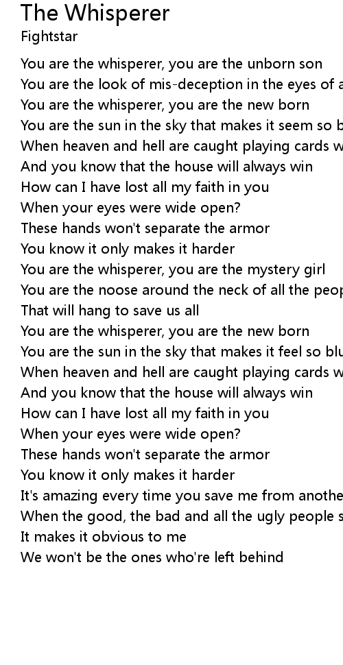 | You are the whisperer, you are the mystery girl | |