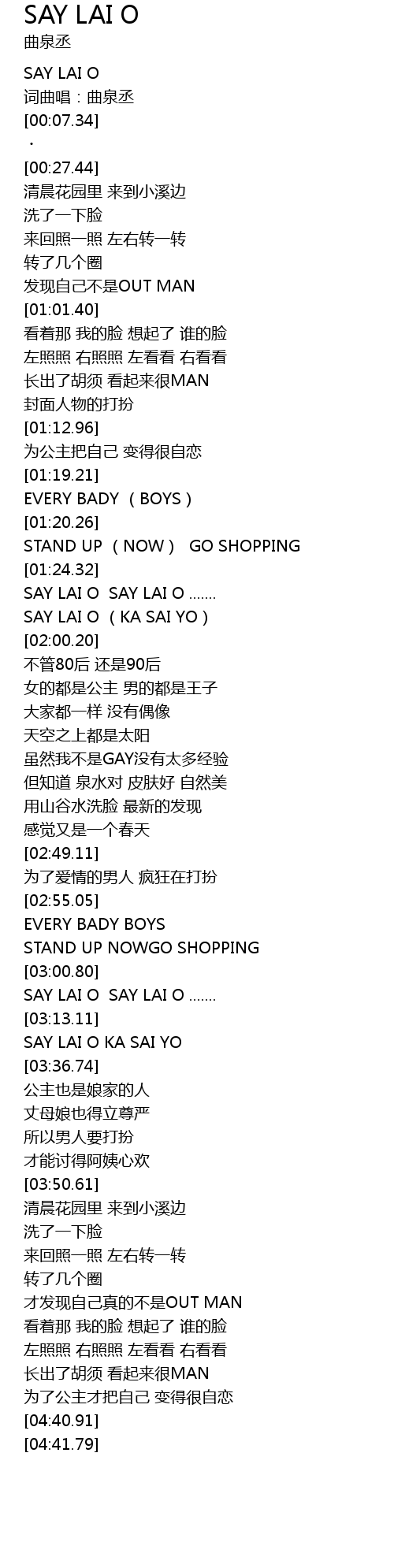 | [03:01.92] | SAY LAI O SAY LAI O ....... |