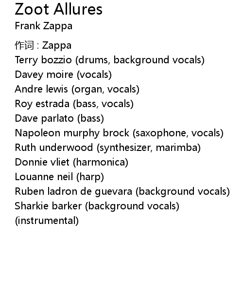 | 歌曲 | Zoot Allures |