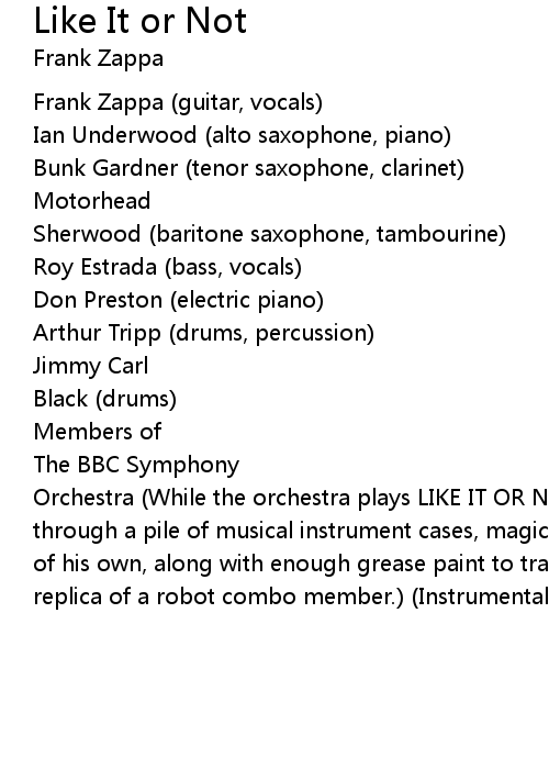 Frank Zappa (guitar, vocals) |