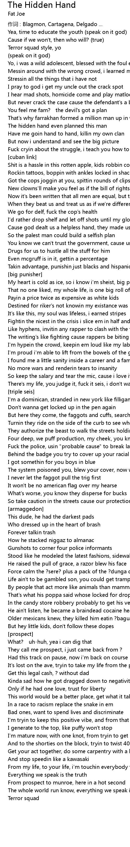 | 作词 : Blagmon, Cartagena, Delgado ... | |