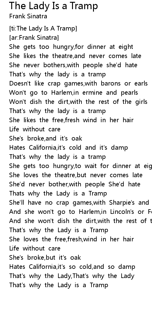 [02:00.543] And she won't go to Harlem,in Lincoln's or Ford's
