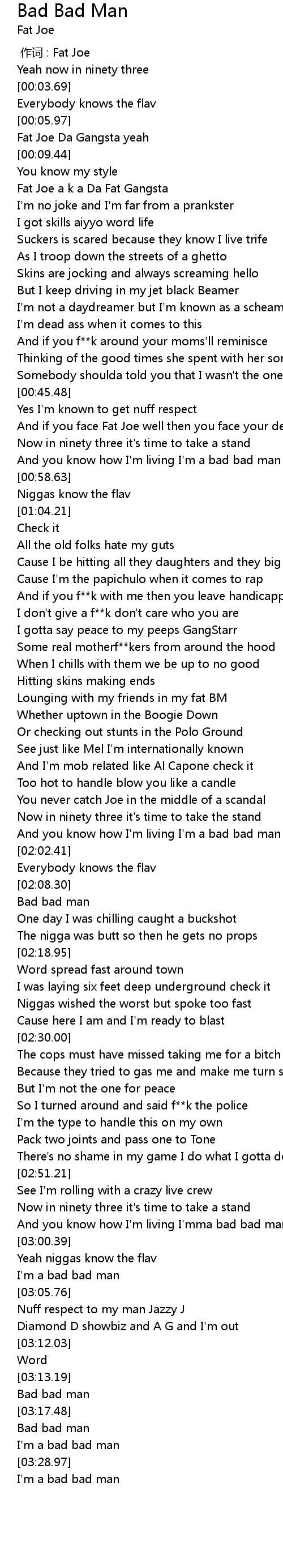 | [03:23.71] | I' m a bad bad man |