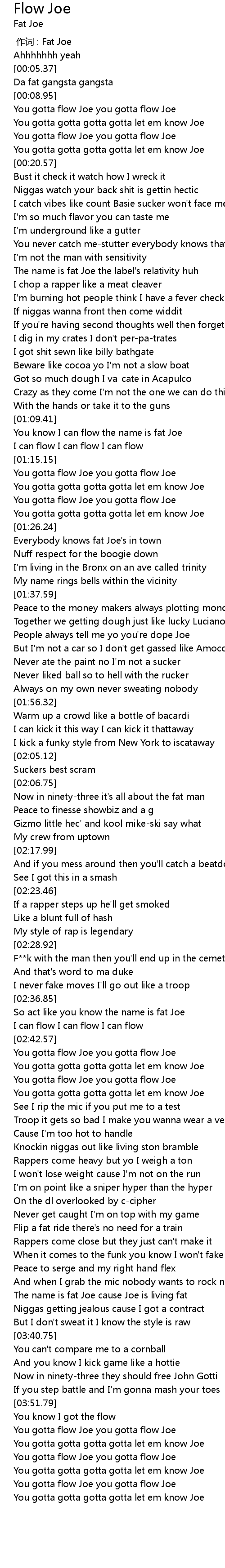 | [03:59.48] | You gotta flow Joe you gotta flow Joe |