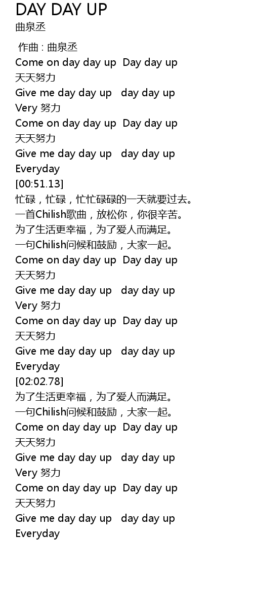 | [02:25.36] | 一句Chilish问候和鼓励,大家一起。 |