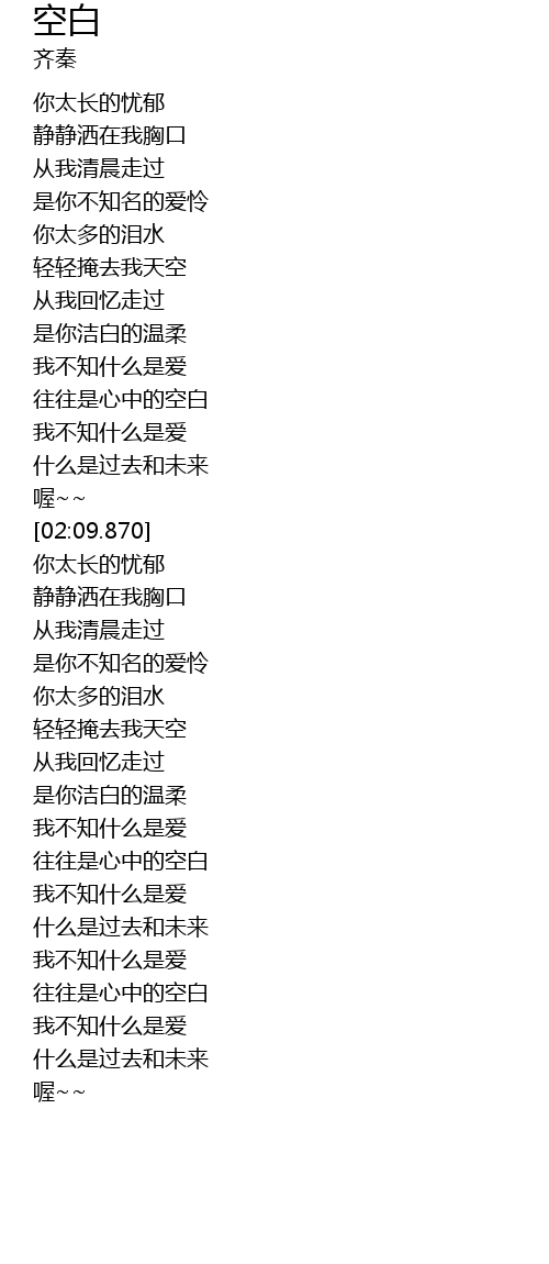 | [01:38.330] | wang wang shi xin zhong de kong bai |