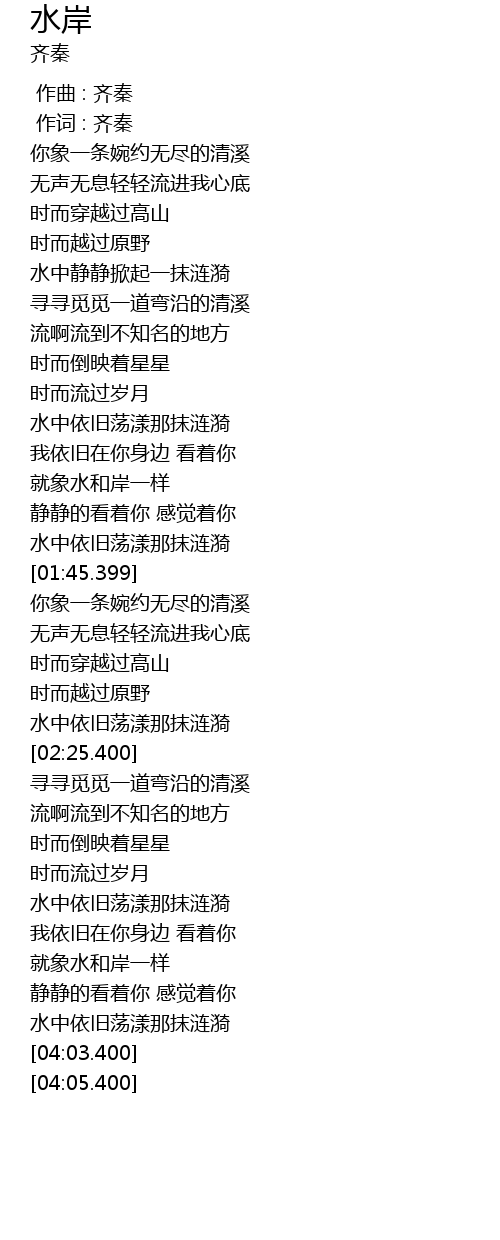 | [01:55.399] | 你象一条婉约无尽的清溪 |