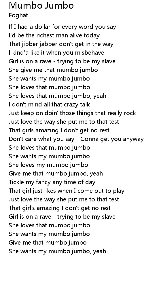 Give me that mumbo jumbo |
