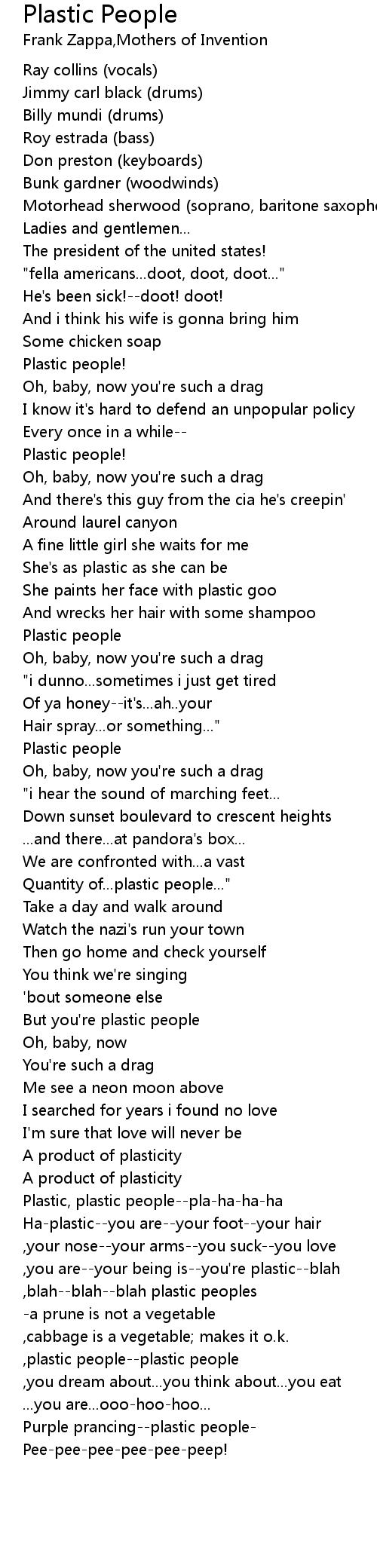 Plastic, plastic people--pla-ha-ha-ha |