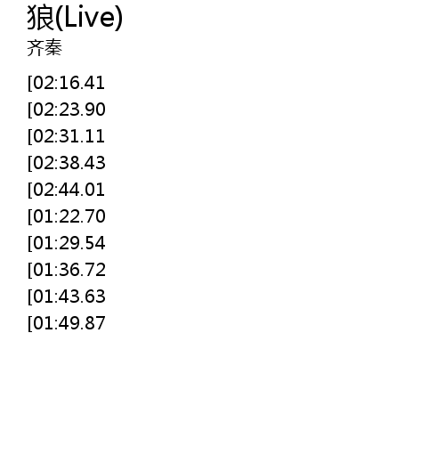 | [03:00.25][02:31.11][01:08.31][00:38.85] | qi li de bei feng chui guo |