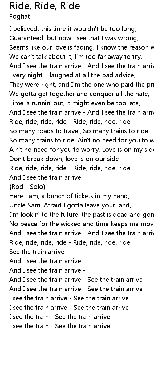 Ride, ride, ride, ride - Ride, ride, ride, ride. |