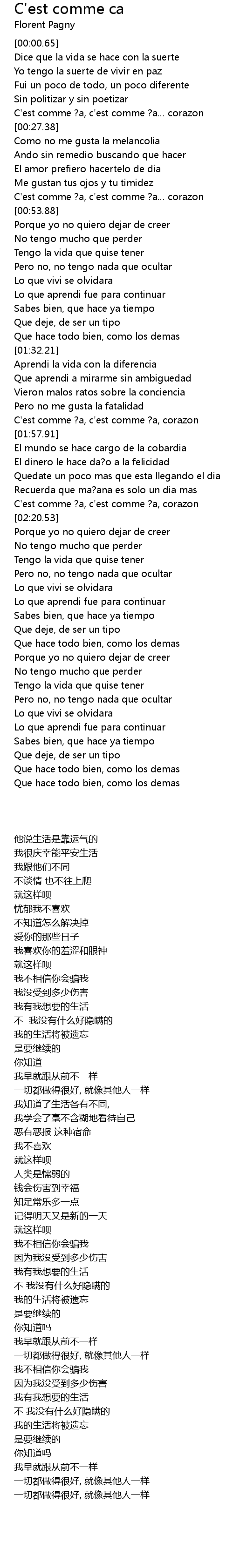 | [02:12.86] | C' est comme ? a, c' est comme ? a, corazon |